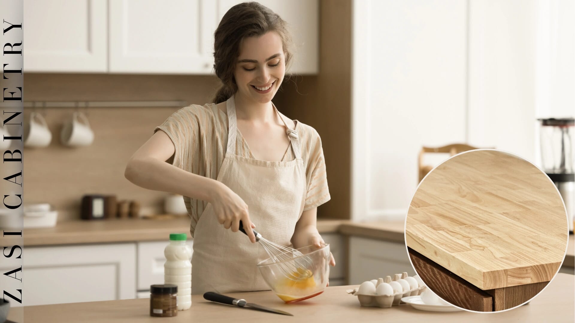 ZASI Cabinetry butcher block offers solid hardwood strength with beautiful natural grain, perfect for custom kitchen islands and durable functional surfaces.