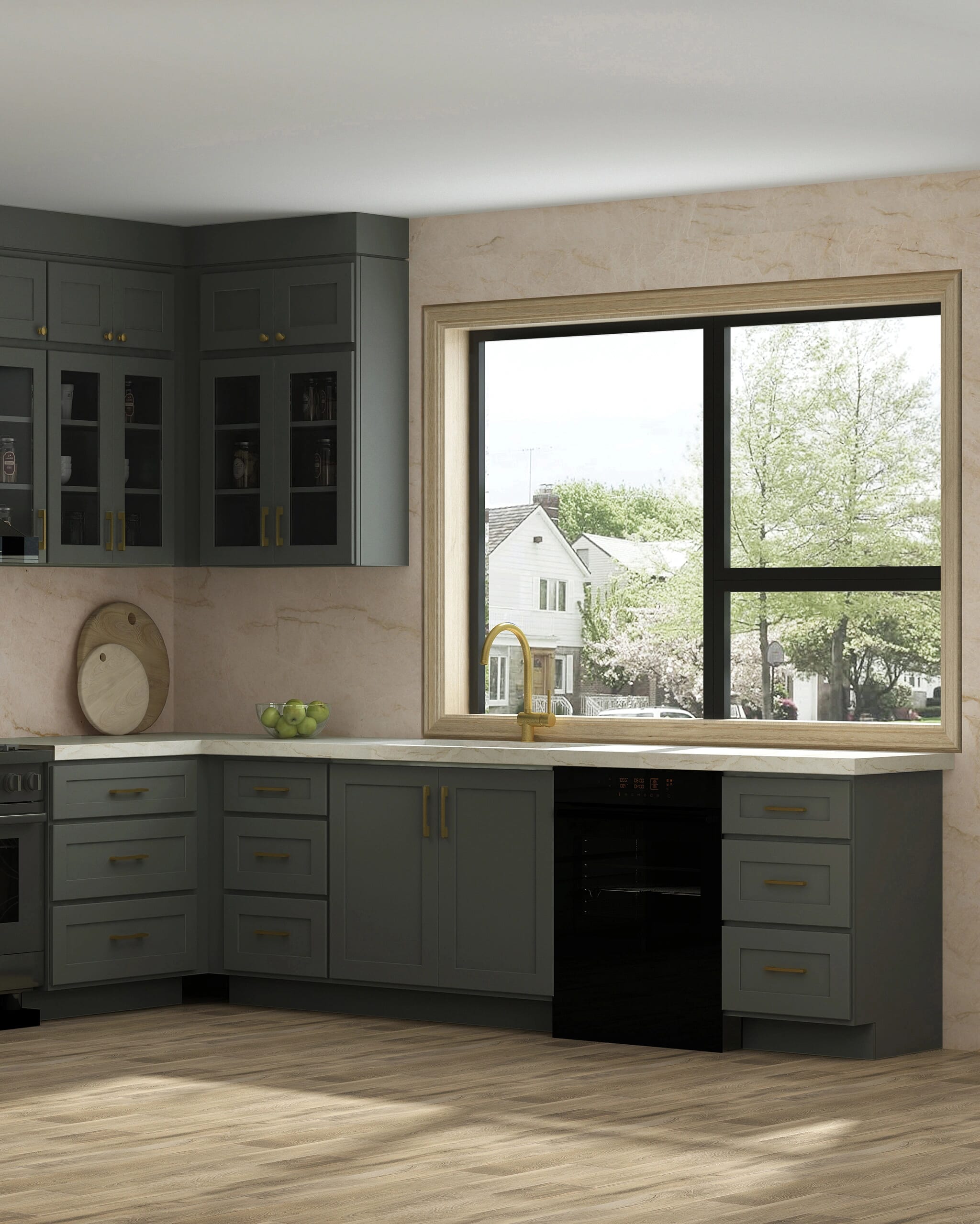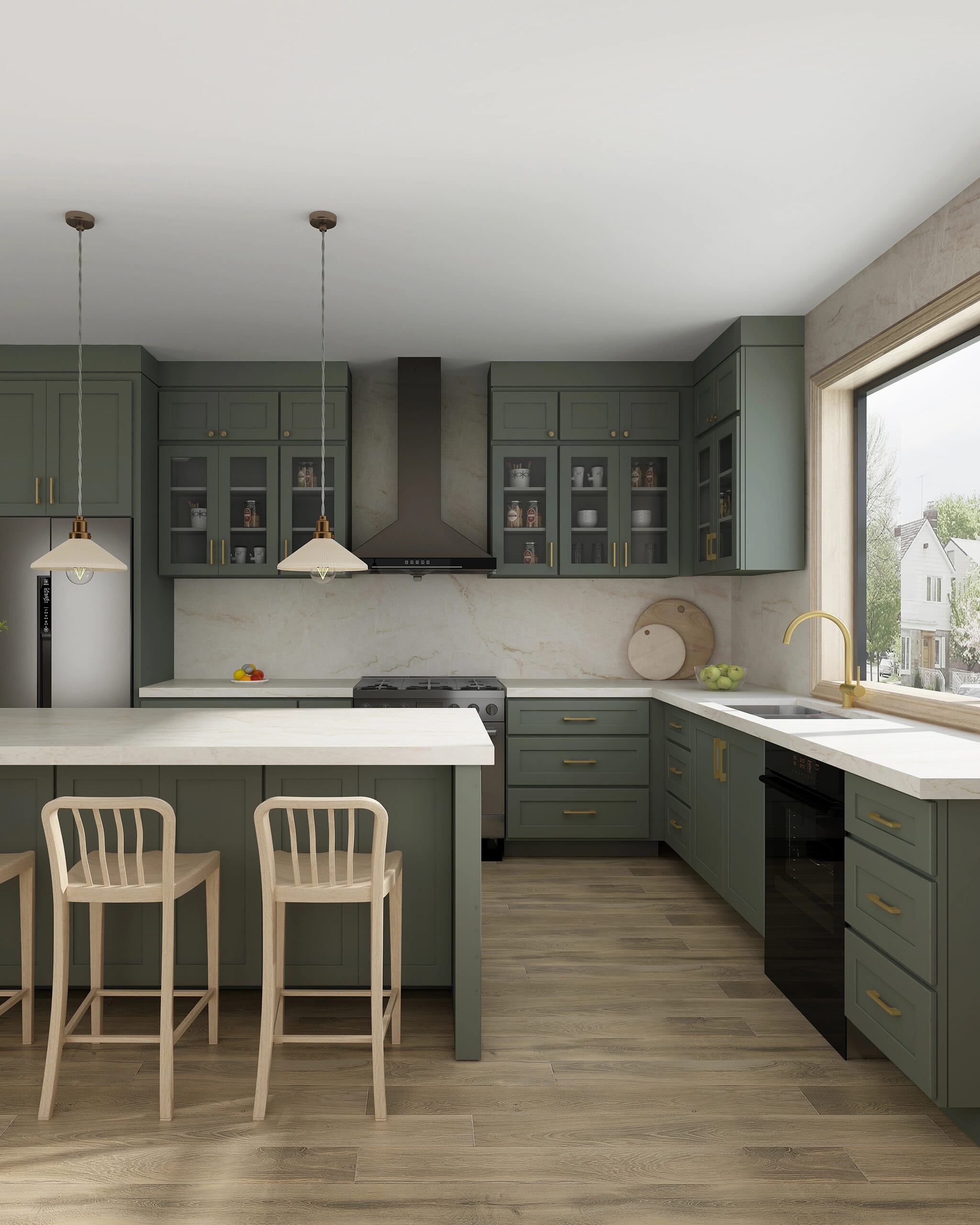 A classic shaker door profile finished in the new Kingston Green color, bringing bold character and timeless appeal to modern kitchens.