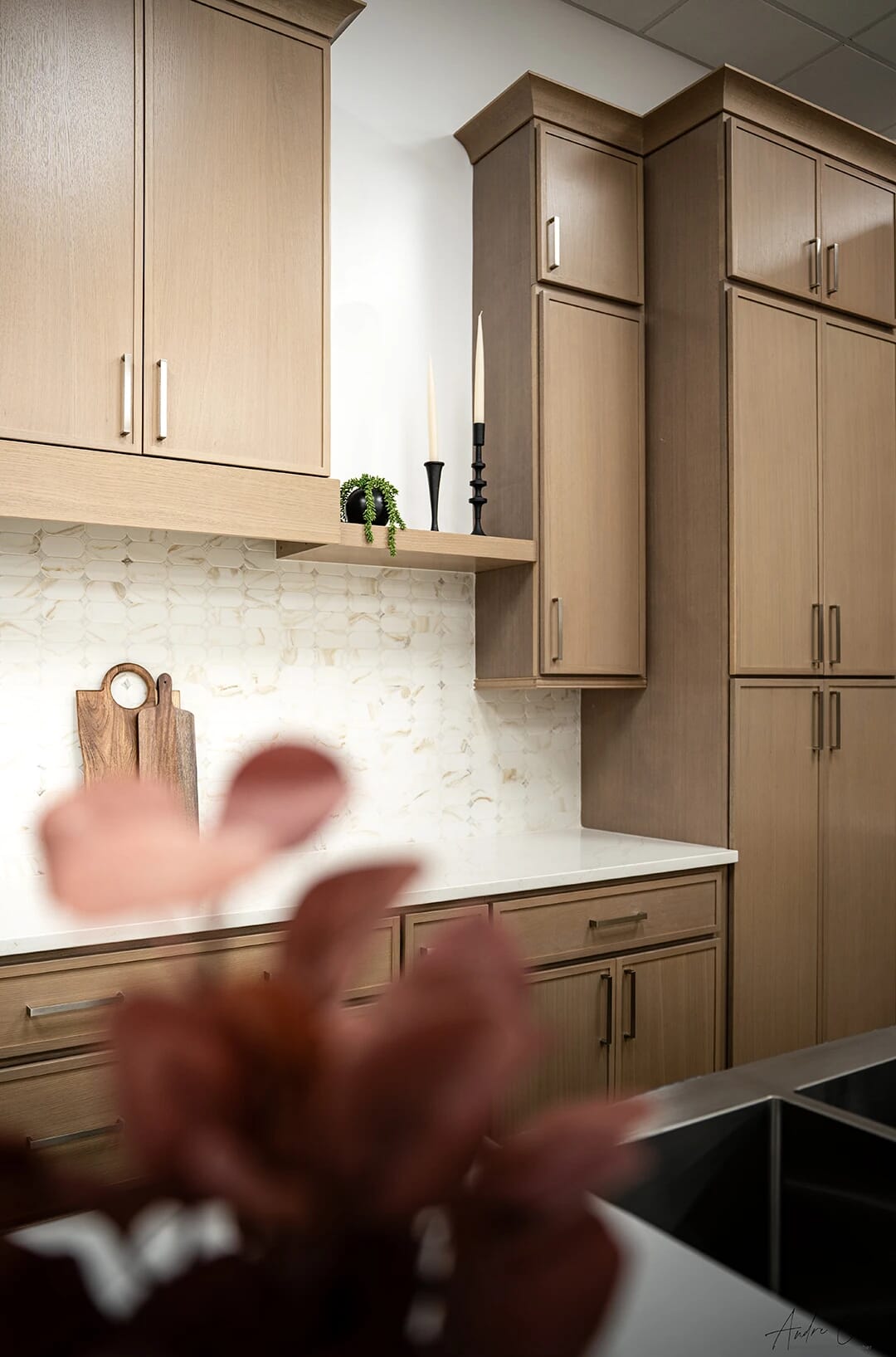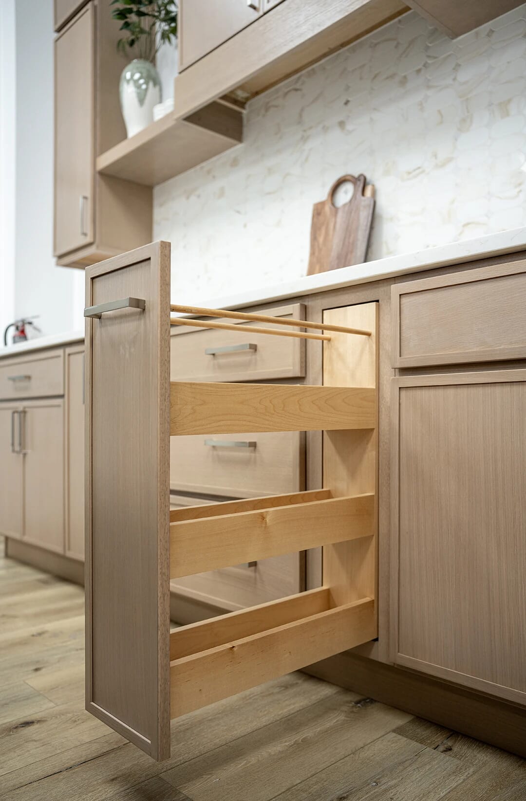 The sophisticated 5-piece construction mimics the door’s craftsmanship, elevating the cabinetry to a furniture-grade aesthetic.